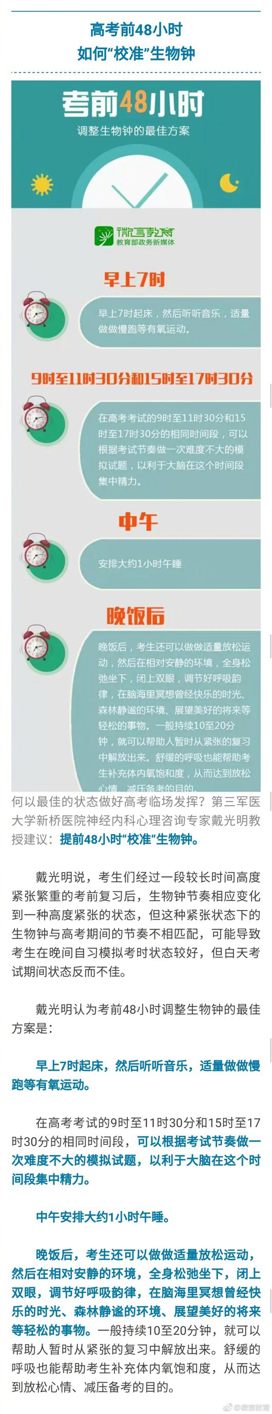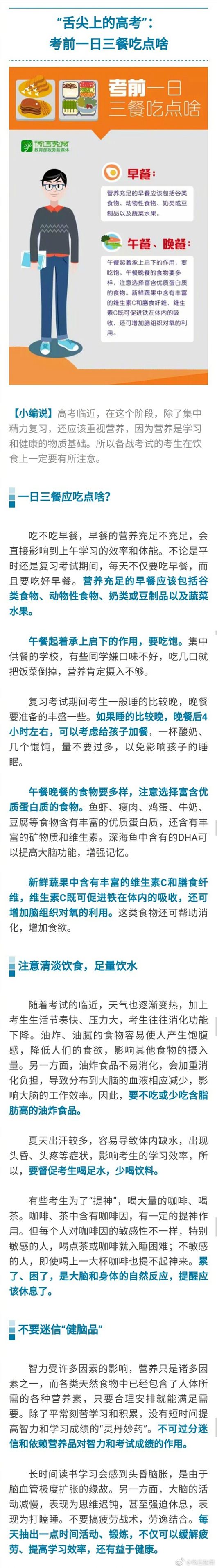中新網(wǎng)5月26日電 據(jù)教育部新聞辦公室官方微博消息,還有十來天就要高考了,考生們在最關(guān)鍵的沖刺階段如何安排飲食、作息?家長們又該如何做好心理調(diào)節(jié),給孩子們營造一個(gè)寬松舒適的情緒環(huán)境,讓考生以最健康的生活狀態(tài)、最輕松的心理狀態(tài)走上考場?詳情戳圖>>