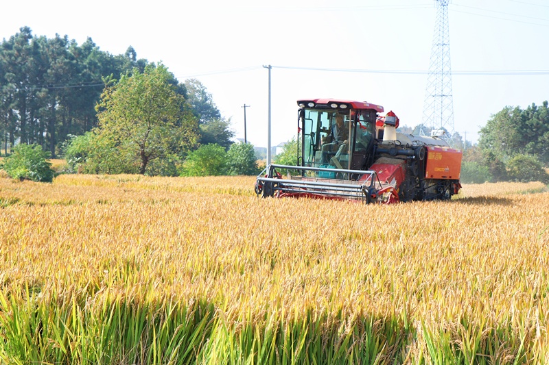 11月5日上午,在宣州區(qū)沈村鎮(zhèn)沈村社區(qū)的晚稻種植田里,沉甸甸的稻穗壓彎了稻稈,飽滿的谷粒透著誘人的光澤。伴隨著“轟隆隆”的機械轟鳴聲,收割機在田間來回作業(yè),割稻、脫粒、秸稈粉碎一氣呵成,不到十分鐘,便完成了一畝稻田的收割。