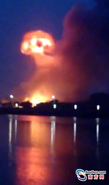 “場面非常嚇人,不僅火勢很猛,而且連接響起爆炸聲,聲音很響!焙槊锋(zhèn)望沙路附近的居民在家中,被猛烈的爆炸聲嚇倒了,當跑出門口看個究竟時,眼前不遠處燃起了直沖云霄的熊熊大火,火光尤其刺眼。當大家正想打聽是哪個工廠發(fā)生火災時,爆炸聲接連響起,讓大家心里為之一驚。