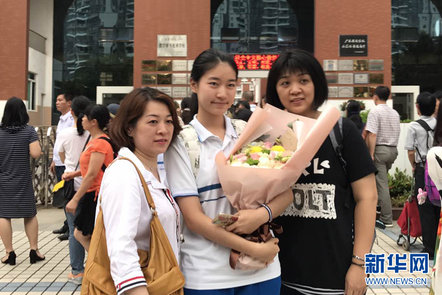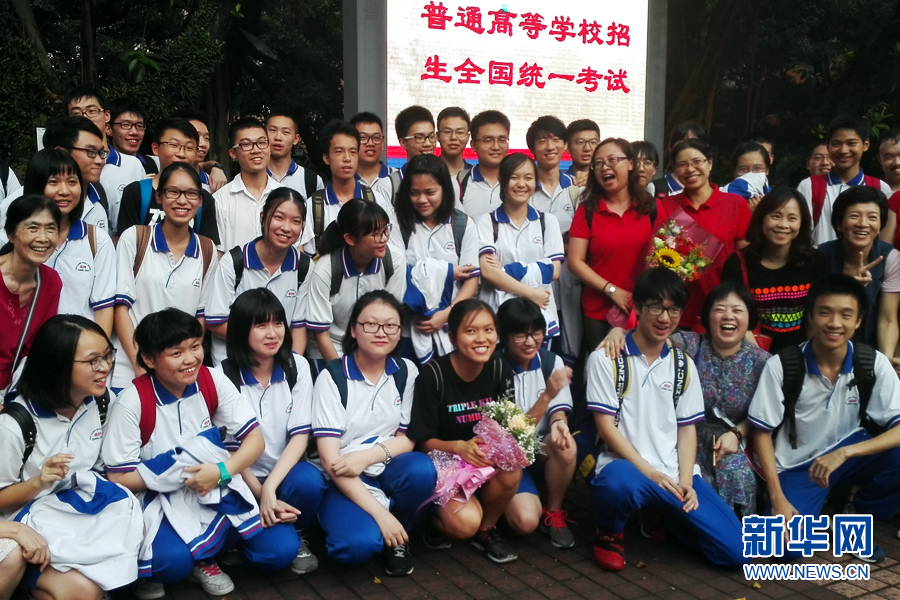 6月8日下午,為期兩天的高考結束,廣州市第一中學考點外,考生和家長合影留念。新華網(wǎng)發(fā) (徐士杰 攝)