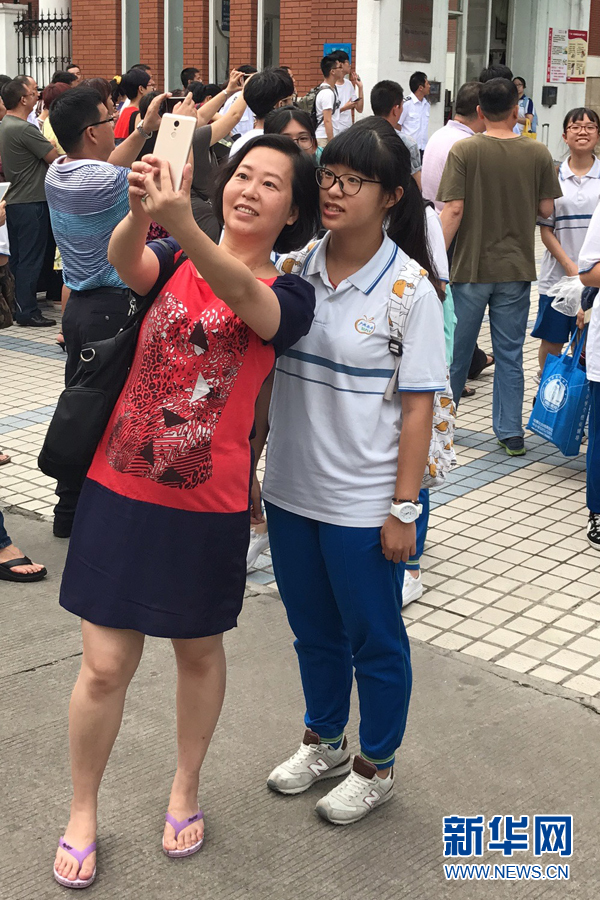 6月8日下午,為期兩天的高考結束,考生與家長玩起了自拍。新華網(wǎng)發(fā) (徐士杰 攝)