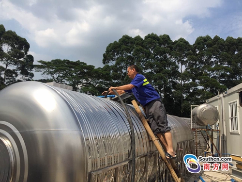 項目部的何小姐告訴記者,生活區(qū)的自來水管道是從石湖村接過來的,7月28日以來,生活區(qū)就開始停水,直到現(xiàn)在也沒有來水。由于目前正值暑假,不少工人家屬都從外地趕過來,生活區(qū)的人數(shù)增加到了130多人,一時間用水更加緊缺。雖然公司已經(jīng)啟動了緊急用水方案,每日限時限量進(jìn)行供水,但也不是長久之計。