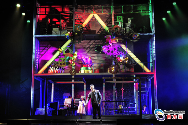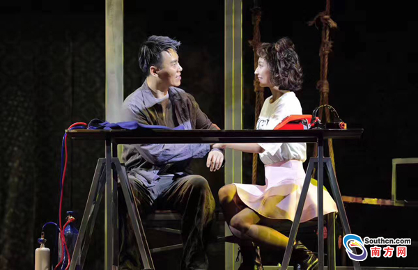 在這部音樂(lè)劇中,除了內(nèi)容上的深沉表達(dá),在舞臺(tái)技術(shù)上也進(jìn)行了大膽的嘗試和突破。松雷音樂(lè)劇團(tuán)先期在北京進(jìn)行了五周左右的工坊版排練,4月8號(hào)出發(fā)到東莞進(jìn)行合成排練,總共用了不到12天時(shí)間。松雷音樂(lè)劇團(tuán)副團(tuán)長(zhǎng)許中堅(jiān)表示,這是該劇團(tuán)有史以來(lái)排練時(shí)間最短、合成時(shí)間最短,也是遇到問(wèn)題最多的一次。