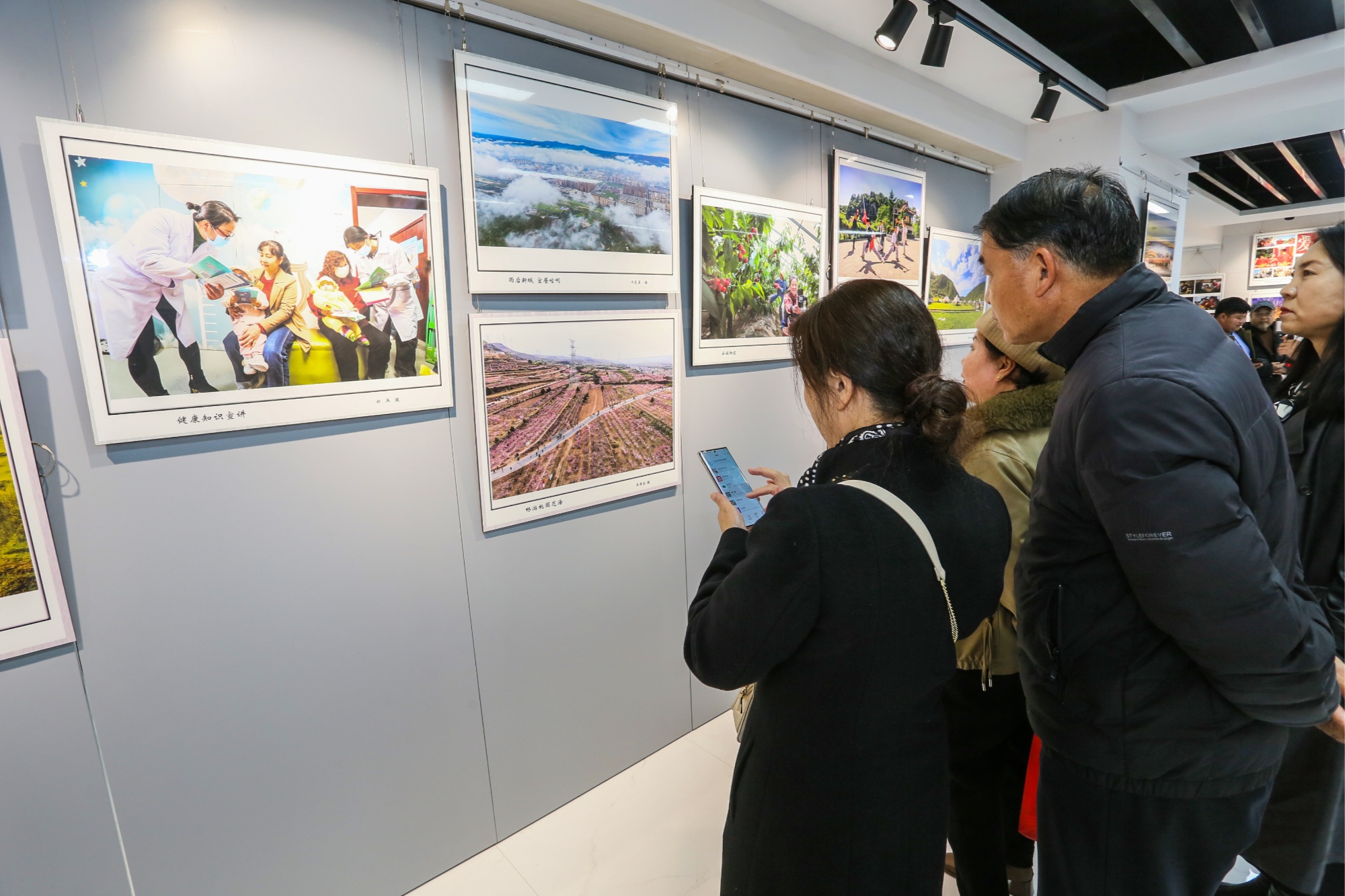 攝影愛好者、市民及游客駐足觀賞“聚焦鏡頭里的魅力崆峒”攝影作品展(崆峒區(qū)融媒體中心供圖)