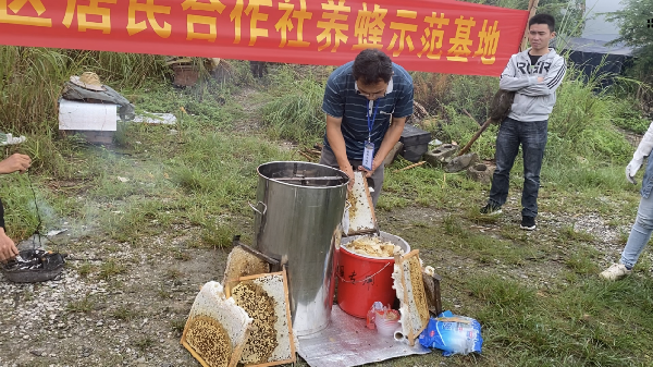 上林縣養(yǎng)蜂能手介紹蜂蜜知識(shí) (央廣網(wǎng)發(fā) 班曉敏攝)