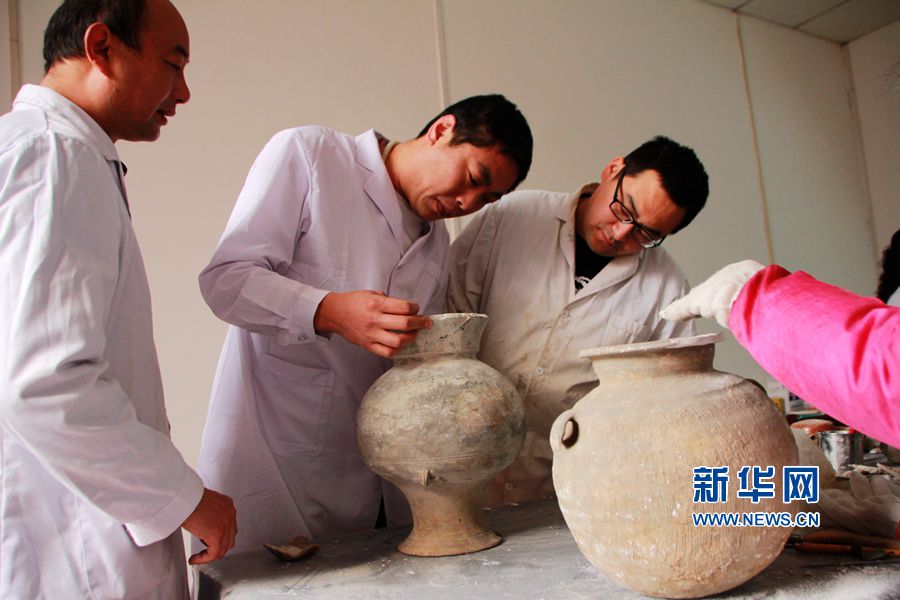 3月2日,在河南內(nèi)鄉(xiāng)縣衙博物館,文物修復(fù)師在精心修補文物。