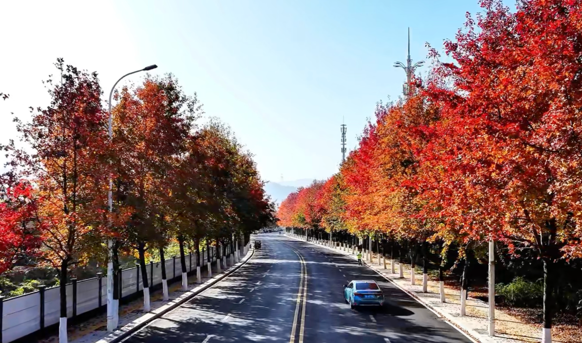 連日來,湖北咸寧咸安區(qū)南昌路社區(qū)孟養(yǎng)浩東路的秋日限定景觀迎來最佳觀賞期。道路兩側(cè)樹木層林盡染,紅、黃、綠三色枝葉交相輝映,宛如一條延伸向遠方的天然“畫廊”。