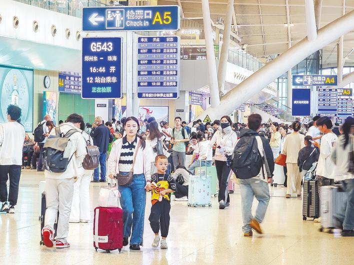 9月30日,武漢火車(chē)站內(nèi)乘客出行秩序井然。 (湖北日?qǐng)?bào)全媒記者 柯皓 攝)