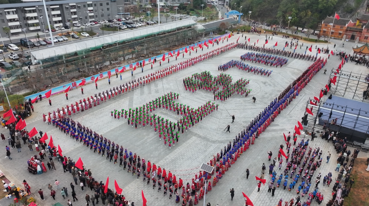 當(dāng)隊(duì)伍匯聚至豸山廣場(chǎng),“千人同臺(tái)秀華章”的環(huán)節(jié)正式開啟。少兒方陣的500名小朋友手持彩紙,組成“江華70”字樣在場(chǎng)地中央整齊排列。隨著《瑤都之約》的悠揚(yáng)旋律響起,全體表演者同步擺動(dòng),靈動(dòng)的舞姿與絢麗的服飾交織,瞬間將現(xiàn)場(chǎng)氣氛推向高潮,充分展現(xiàn)了中華服飾文化的魅力與江華的人文風(fēng)采。
