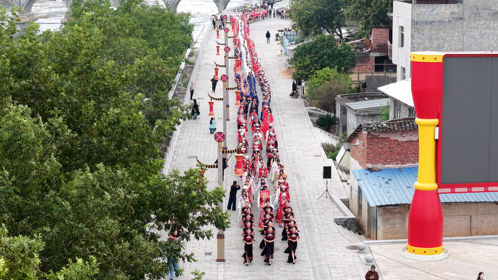 隊(duì)伍行走在河邊街(周聲遙 攝)