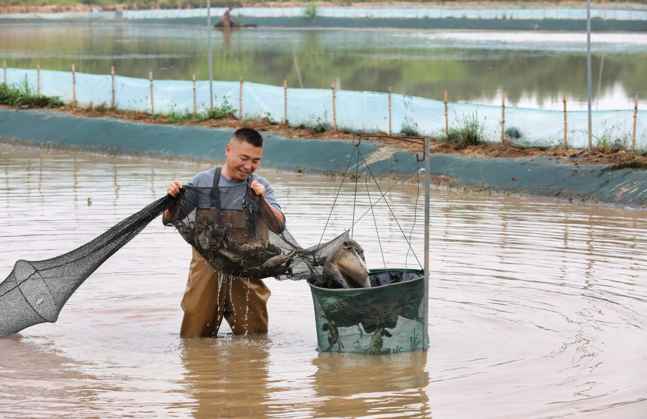 彭澤縣馬當鎮(zhèn)西船形村螃蟹養(yǎng)殖戶正在捕撈螃蟹