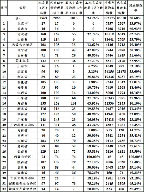日前,教育部辦公廳印發(fā)《關(guān)于全國校外培訓機構(gòu)專項治理行動整改工作進展情況的通報》,截至2018年10月15日,全國共摸排校外培訓機構(gòu)400532所,存在問題機構(gòu)272175所,現(xiàn)已完成整改83510所,完成整改率30.68% 。黑龍江省發(fā)現(xiàn)問題的機構(gòu)數(shù)有6611所,已整改2178所,完成整改率達32.95%。