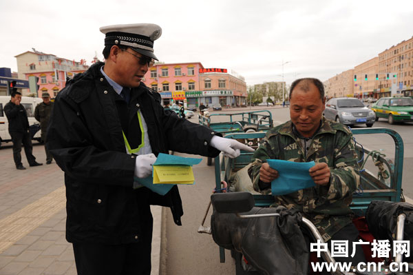 中廣網呼和浩特5月8日消息(記者那森寶音 通訊員徐海晨)趙樹森是內蒙古赤峰市松山區(qū)公安分局交警大隊的一名普普通通的崗勤民警,他和其他崗勤民警一樣,每日在馬路上疏導交通,糾正違章,默默地為千千萬萬道路交通參與者的安全出行做著自己的貢獻。大多數人認為,在警察的行列中,交通警察的工作是最平淡、最枯燥,最勞累,最不容易做出驚天動地的業(yè)績,可是老趙并不這樣看,他認為只要付出了智慧和汗水,每個工作崗位都能干出成績。