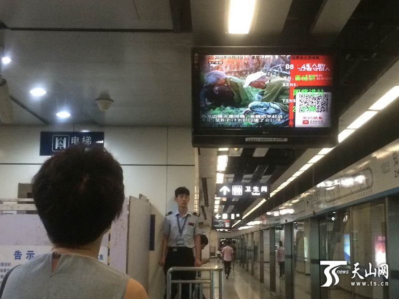 8月3日早晨8時(shí)許,已在北京生活十年的解女士,在北京地鐵10號(hào)線(xiàn)知春路站,忽然看見(jiàn)兩側(cè)報(bào)站屏上播放著一部關(guān)于新疆的公益視頻——新疆的戈壁灘上,一個(gè)老人正在升旗,旗桿是用粗糙的樹(shù)干做的。