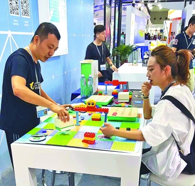 工作人員向觀眾展示編程機(jī)器人。光明日?qǐng)?bào)記者 黨文婷攝/光明圖片