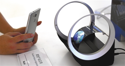 投資近300億元、具有完全自主知識產(chǎn)權(quán)的維信諾(固安)第六代全柔AMOLED生產(chǎn)線日前在河北省廊坊市固安產(chǎn)業(yè)新城正式啟動運(yùn)行。圖為一名參觀者在維信諾展廳拍攝可彎曲屏幕。 新華社記者 王 曉攝