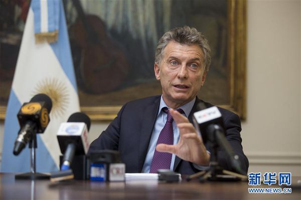 2017年5月,在阿根廷首都布宜諾斯艾利斯,阿根廷總統(tǒng)毛里西奧·馬克里接受采訪時(shí)表示,“一帶一路”將促進(jìn)阿中交流和互聯(lián)互通。圖片來源:新華社