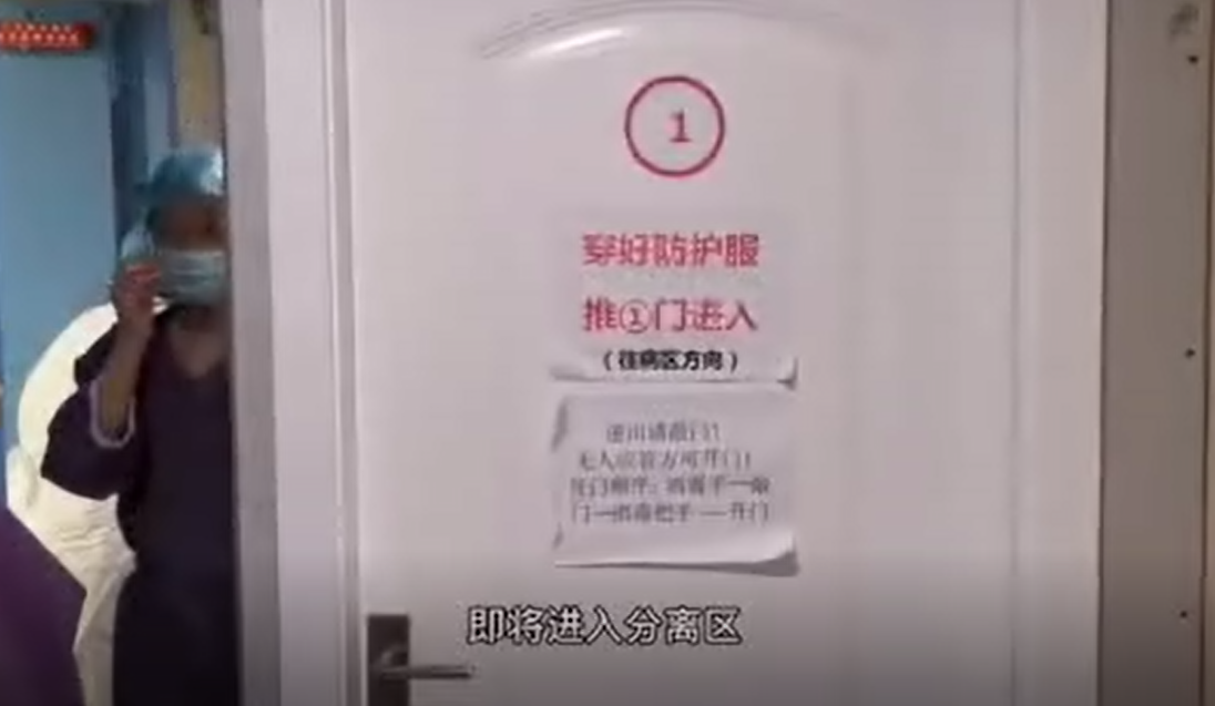 “清潔區(qū)和污染區(qū)之間有一塊玻璃窗,透過玻璃窗可以看到隔離區(qū)的繁忙景象!倍南几锌,“玻璃窗內(nèi)外,兩個(gè)世界”。