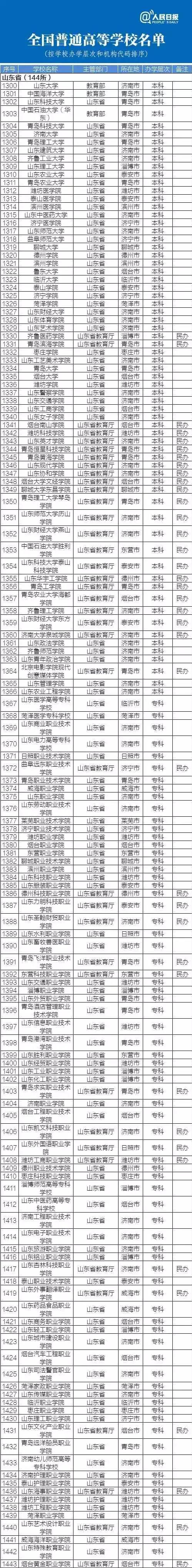 以下是教育部權(quán)威發(fā)布的最新山東正規(guī)高校名單。