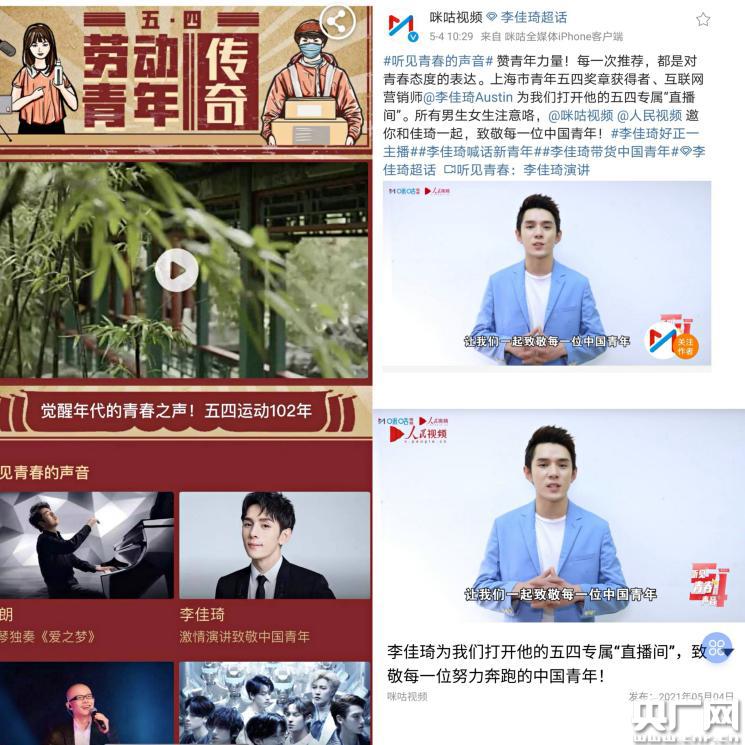 今天,李佳琦還在“聽見青春的聲音”五四青年主題活動中,以“帶貨中國青年”的特別演講,致敬每一位中國青年。