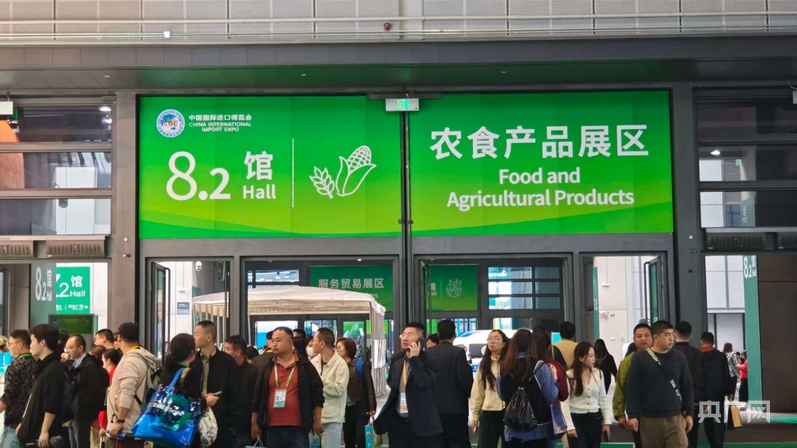 今年進(jìn)博會(huì),農(nóng)食產(chǎn)品展區(qū)人頭攢動(dòng)(央廣網(wǎng)記者 林馥榆 攝)