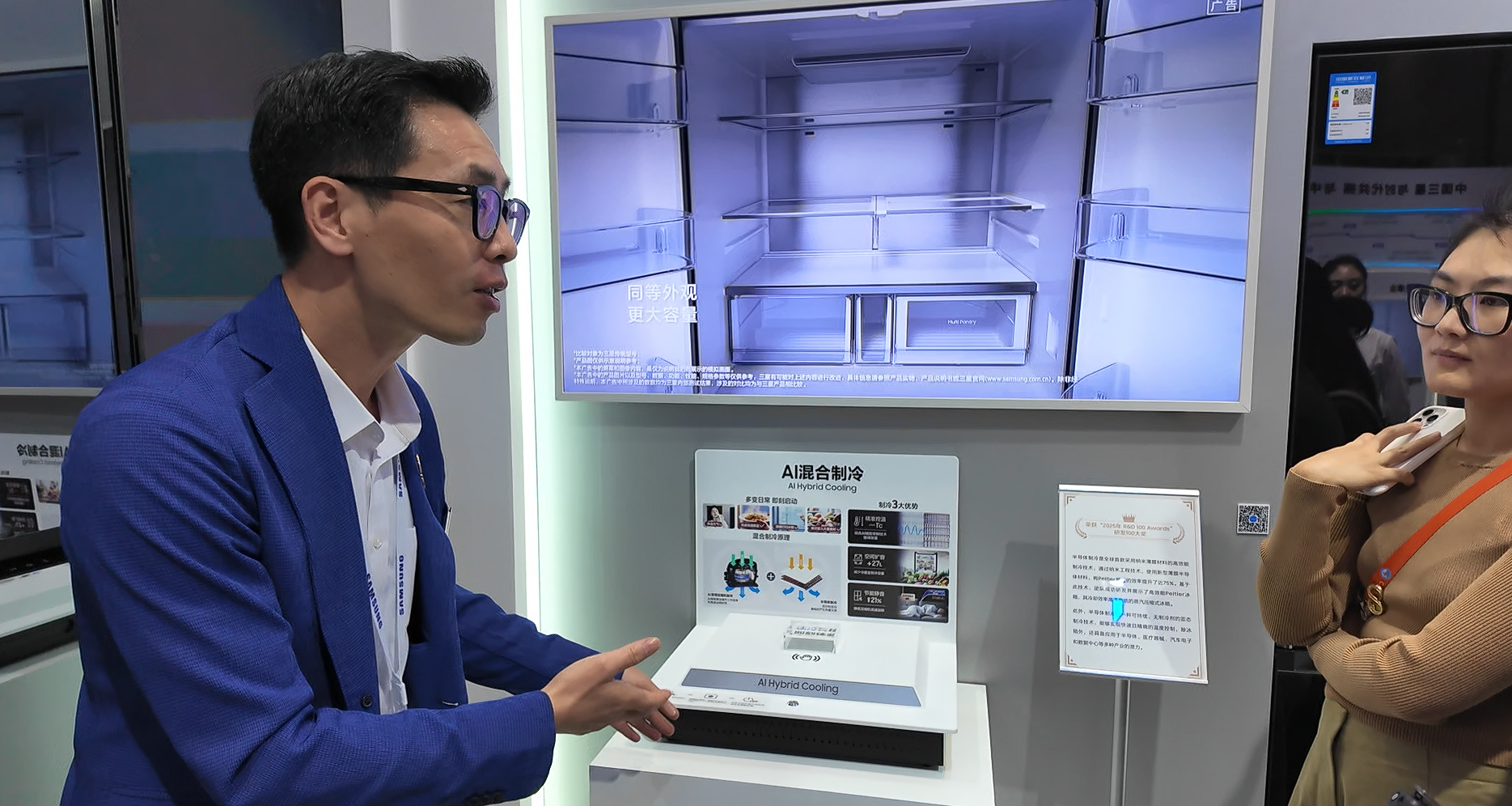 三星員工展示AI設(shè)備 (央廣網(wǎng)記者 沈梅 攝)