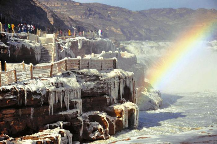 12月11日,吉縣黃河壺口瀑布出現(xiàn)“冰瀑玉壺”景觀。近日,受持續(xù)降溫天氣影響,吉縣黃河壺口瀑布出現(xiàn)“冰瀑玉壺”景觀,瀑布下游的十里龍槽已完全被流凌覆蓋,凝結(jié)成潔白的“玉帶”,吸引了眾多游客和攝影愛(ài)好者前來(lái)感受冬日里的別樣景觀。