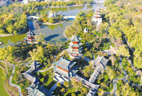 10月23日,金秋艷陽(yáng)下太原迎澤公園亭、臺(tái)、樓、閣錯(cuò)落有致,宛如一幅古韻山水畫(huà)。近日,迎澤公園西南角二期續(xù)建項(xiàng)目完工開(kāi)放,此次開(kāi)放的五峰插云景區(qū)仿古建筑群及悅園,主要建筑將被用作展館,陳列各式作品及花卉展覽等,以供游人觀賞休憩。(記者李兆民攝)