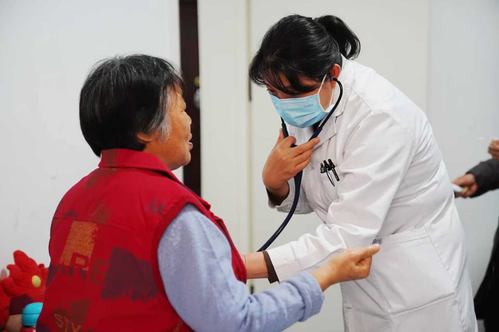 醫(yī)護(hù)人員正在為老人做檢查(陽泉礦區(qū)新聞中心供圖)