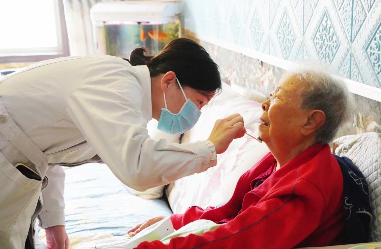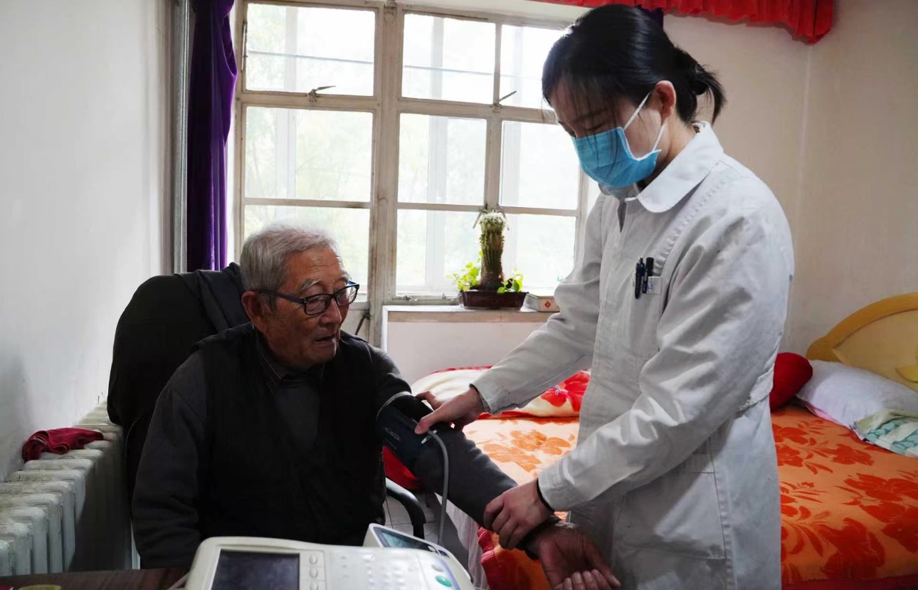 醫(yī)護(hù)團(tuán)隊(duì)為老人提供上門問診服務(wù)(陽泉礦區(qū)新聞中心供圖)