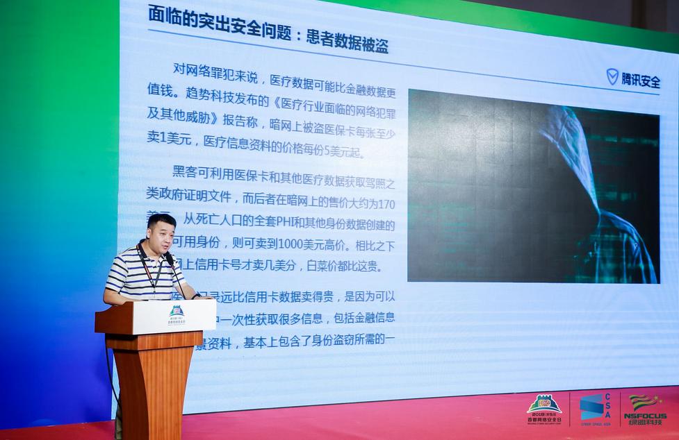 4月26日,騰訊企業(yè)安全首席架構師謝斌受邀參加大會,并在會上圍繞“安全生態(tài)運營思路”進行分享。他以醫(yī)療行業(yè)為例,指出了目前面臨的網(wǎng)絡安全威脅問題,結(jié)合騰訊企業(yè)安全多年來的安全經(jīng)驗對醫(yī)療行業(yè)的安全生態(tài)運營思路進行探討,并詳細介紹了騰訊企業(yè)安全的“御點”、“御界”、“御見”三款企業(yè)網(wǎng)絡安全產(chǎn)品針對不同的安全場景所構建的安全生態(tài)解決方案。