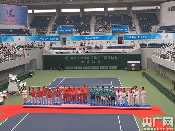 央廣網(wǎng)天津6月18日消息(記者 劉陽)6月18日,第十三屆全運(yùn)會網(wǎng)球團(tuán)體賽決賽在天津網(wǎng)球中心舉行。江蘇隊(duì)奪得男子組冠軍,天津隊(duì)奪得女子組冠軍。男子組最后決勝隊(duì)伍江蘇隊(duì)與浙江隊(duì)實(shí)力相近,最后以江蘇隊(duì)雙打配合優(yōu)勢險勝浙江隊(duì)。而女子組團(tuán)體賽天津隊(duì)以兩名實(shí)力戰(zhàn)將張帥、彭帥,兩場單打以明顯優(yōu)勢奪得冠軍。