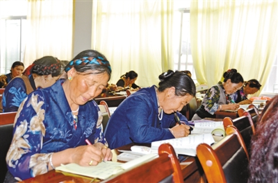圖為該社區(qū)群眾在課堂上認(rèn)真作筆記