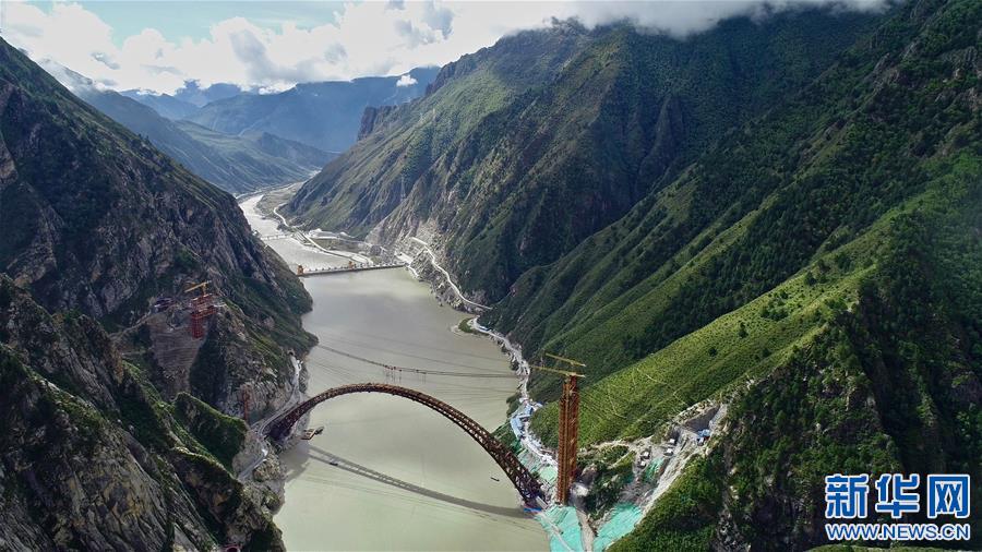 9月28日拍攝的川藏鐵路拉林段重點標志性工程藏木特大橋合龍儀式現(xiàn)場。新華社記者 普布扎西 攝