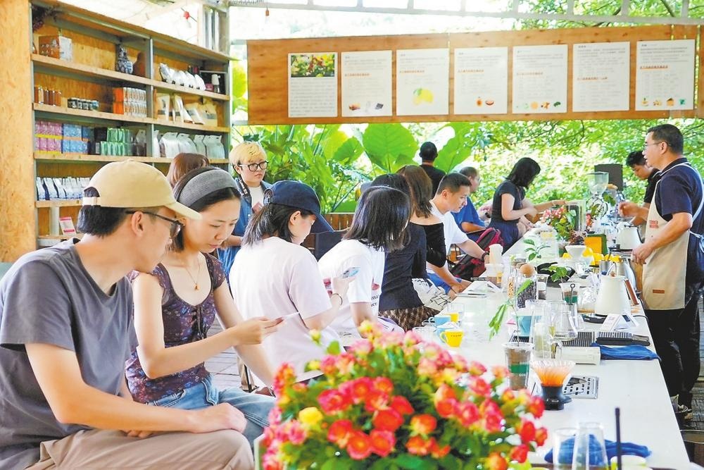 游客在天玉莊咖啡園品嘗咖啡。通訊員 羅嘉 攝